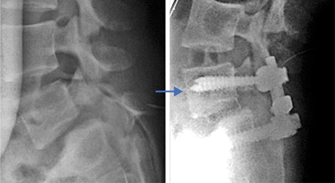 腰椎の不安定性やすべりがある場合はインプラントを用いた腰椎固定・骨移植術にて背骨の安定化をはかります。