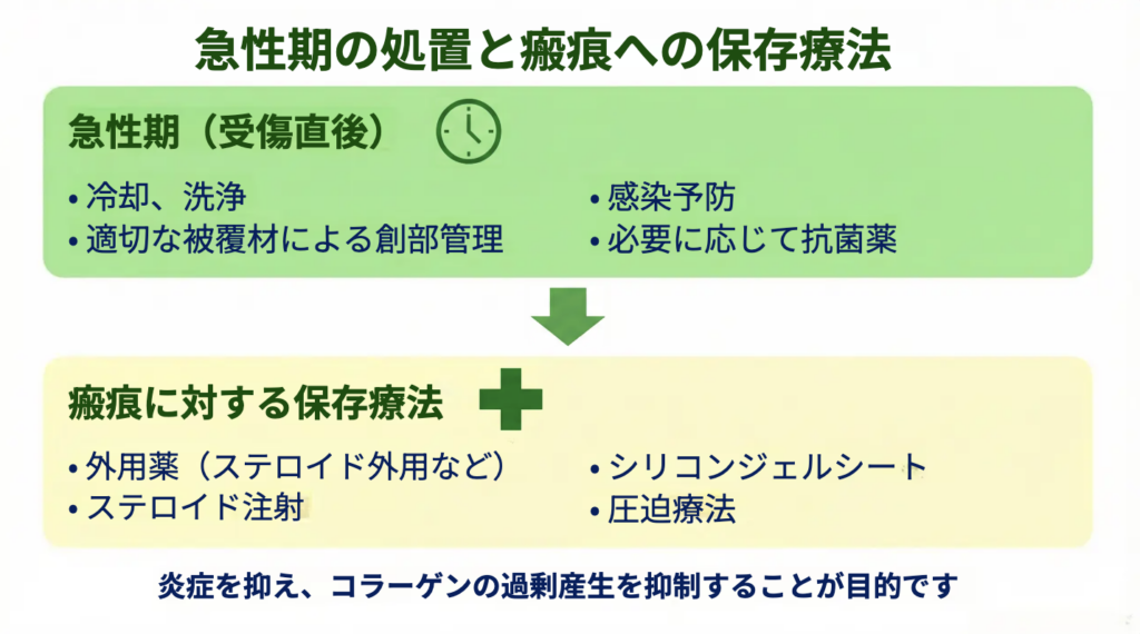 急性期の処置と瘢痕への保存療法