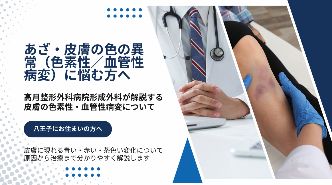 高月整形外科病院・形成外科では、原因を丁寧に評価し、医学的根拠に基づいた治療選択を行っています。八王子であざや皮膚の色の異常にお悩みの方は、専門医による適切な診断を受けることをおすすめします。