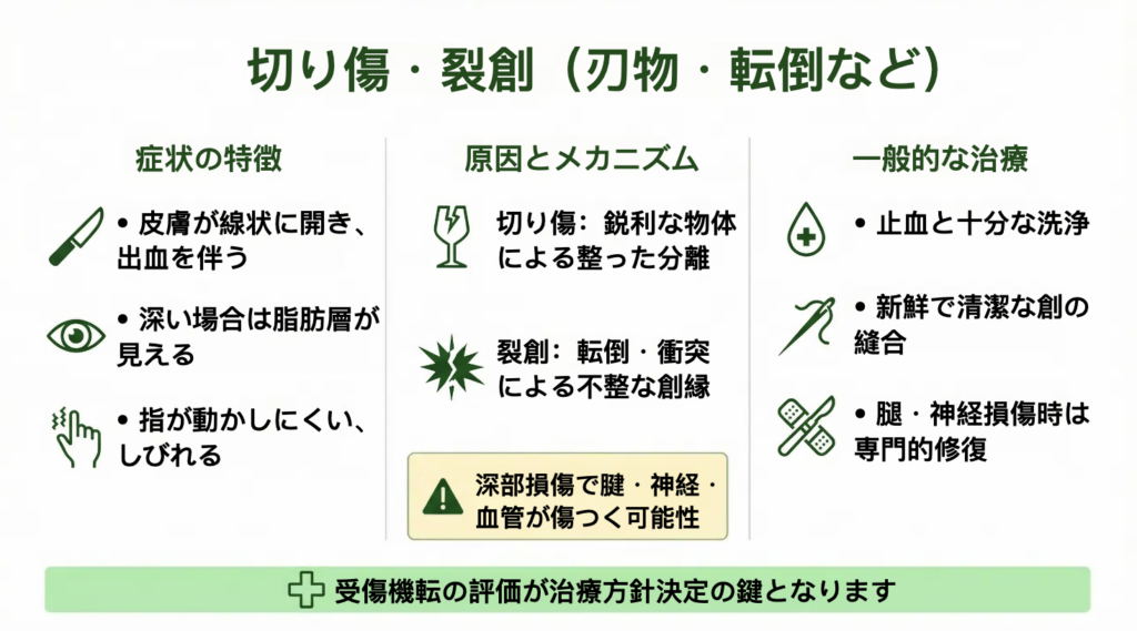 切り傷・裂創(刃物・転倒など)― 出血する傷は「深さ」と「受傷機転」が重要
