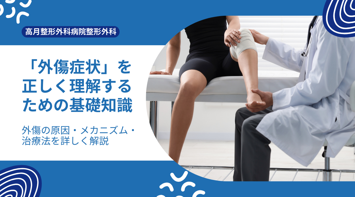 外傷とは、転倒・衝突・ひねり・スポーツなど、外から加わった力(外力)によって起こるケガの総称です。高月整形外科病院の整形外科でも、日常生活の転倒からスポーツ中の負傷まで、さまざまな外傷症状の相談が多くみられます。