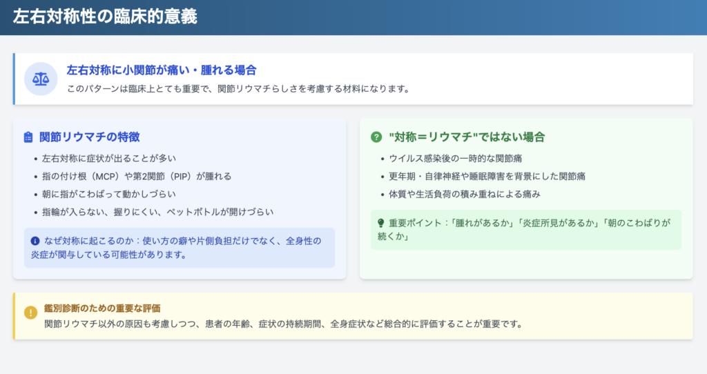 ただし「対称=リウマチ」ではありません(よくある別の原因)