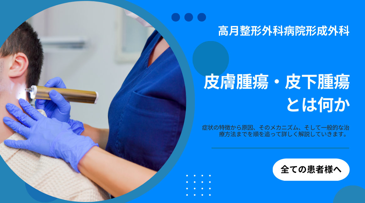 高月整形外科病院の形成外科では、皮膚・皮下組織の解剖学的構造を踏まえ、腫瘤の深さや周囲組織との関係を丁寧に評価し、脂肪腫であるかどうかを慎重に判断します。