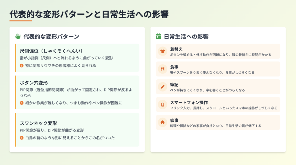 代表的な変形パターンと日常生活への影響