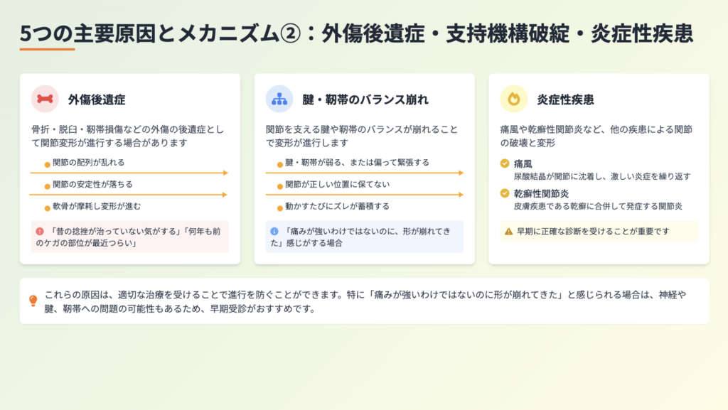 関節変形・構造障害の原因は一つではありません。
