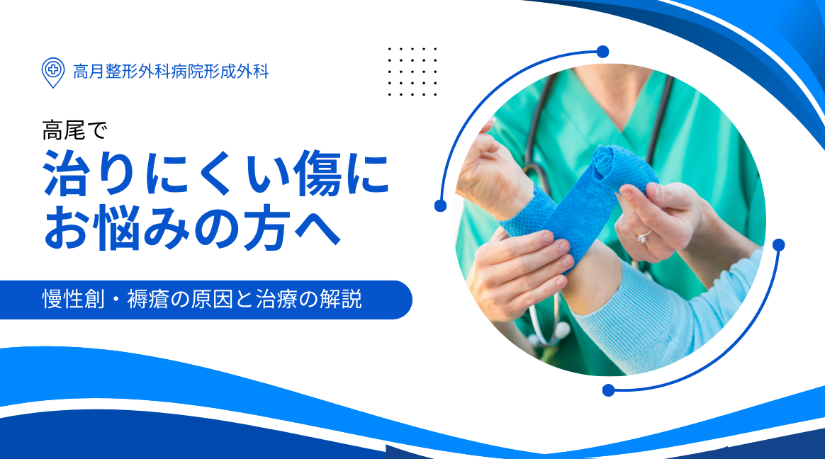 この記事では、高月整形外科病院・形成外科の視点から、褥瘡、糖尿病足潰瘍、静脈うっ滞性潰瘍、術後創の治癒遅延、壊死・感染創といった代表的な慢性創について、原因、メカニズム、一般的な治療方法を丁寧に整理していきます。