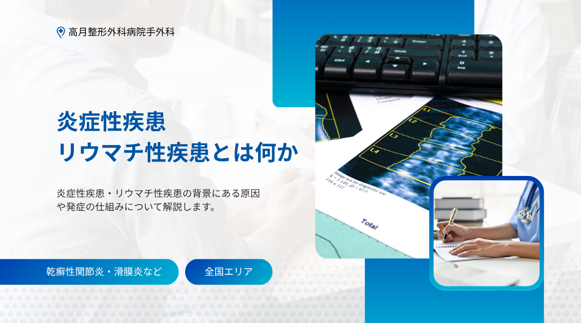 本記事では、高月整形外科病院・手外科の視点から、手や関節に影響する代表的な炎症性疾患・リウマチ性疾患について、原因、発生メカニズム、一般的な治療の考え方を整理していきます。具体的には、