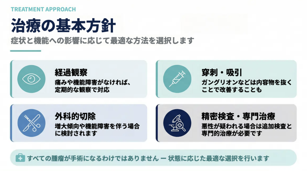 高月整形外科病院・手外科では、腫瘤に対して単に「手術をするかどうか」を決めるのではなく、
