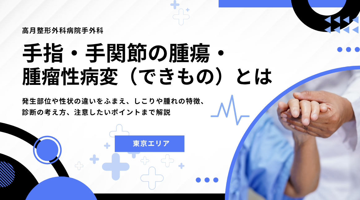 本記事では、高月整形外科病院・手外科の視点から、東京で手指・手関節のしこりや腫れに不安を感じている方に向けて、代表的な腫瘍・腫瘤性病変について整理していきます。具体的には、